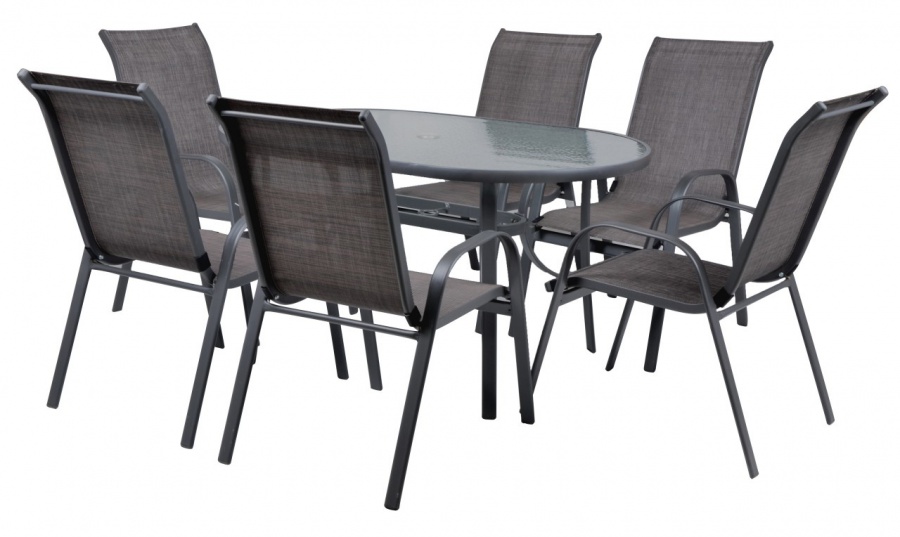 Hagemøbler i stål. Passer for hager som er beskyttet og under tak eller lignende. Passer ikke for åpne, våte steder.