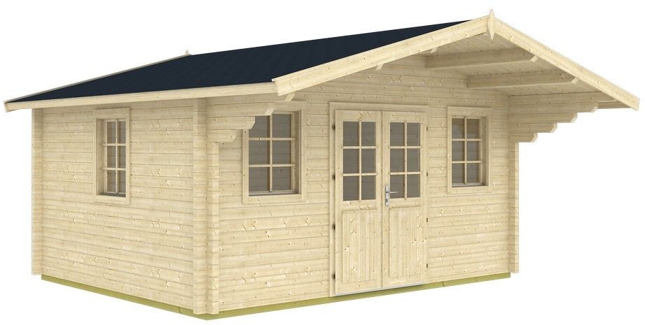 Alva D anneks er en tømmerhus i elegant design med saltak og en solid takgavl. Et fint anneks som kan brukes til nye. Materiale av nordisk gran av høy kvalitet, valgt med omhu. Utstyrt med dobbeldør med dekorative sprosser, brystning og tre åpningsbare vinduer. Annekset passer passer bra som campinghytte, jakthytte, hytte, kontor, gjestehus og mer. Leveres som byggesett, ubehandlet, og det er enkelt å montere etter anvisningen som følger med.
