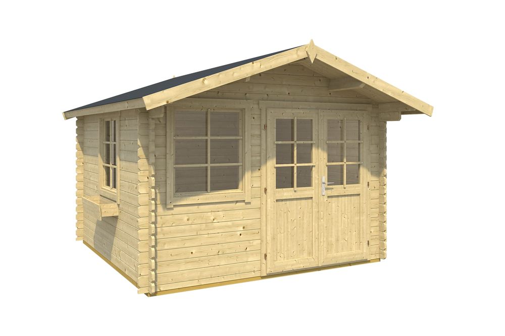 Dette bygget leveres komplett som sett og monteres enkelt etter den medfølgende tegningen. Hytta har et laftet tømmerdesign og struktur som gjør den både lettmontert og stabil. Alt materiale leveres ubehandlet, det anbefales å behandle med grunningsolje, utendørsmaling eller dekkmaling tidlig. Inkludert er alt som trengs for montering, d.v.s. spiker, skruer, etc.