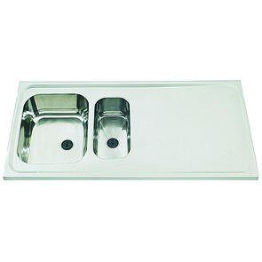 Vendbar heldekkende vask med stor og liten skuff. Leveres med to stoppere/sil, overløp og vannlås.