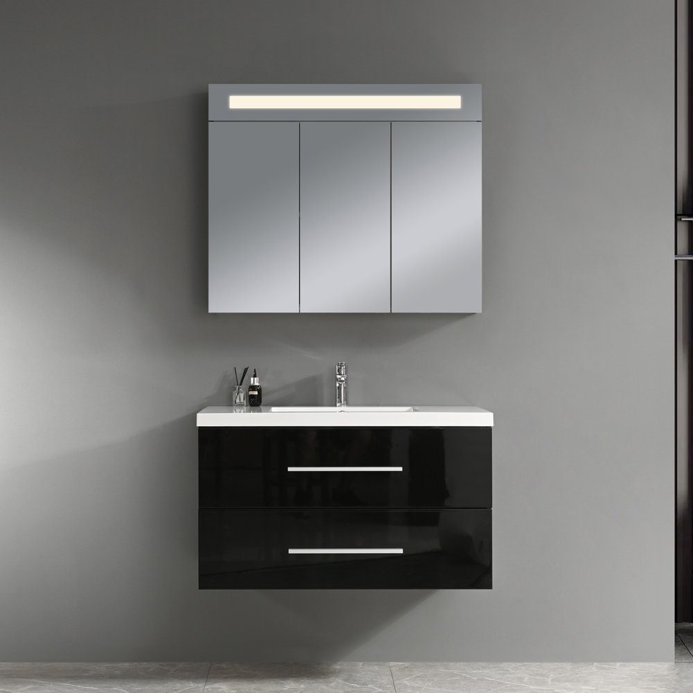 Baderomsmøbel 90 cm svart LED-speilskap - Malaga