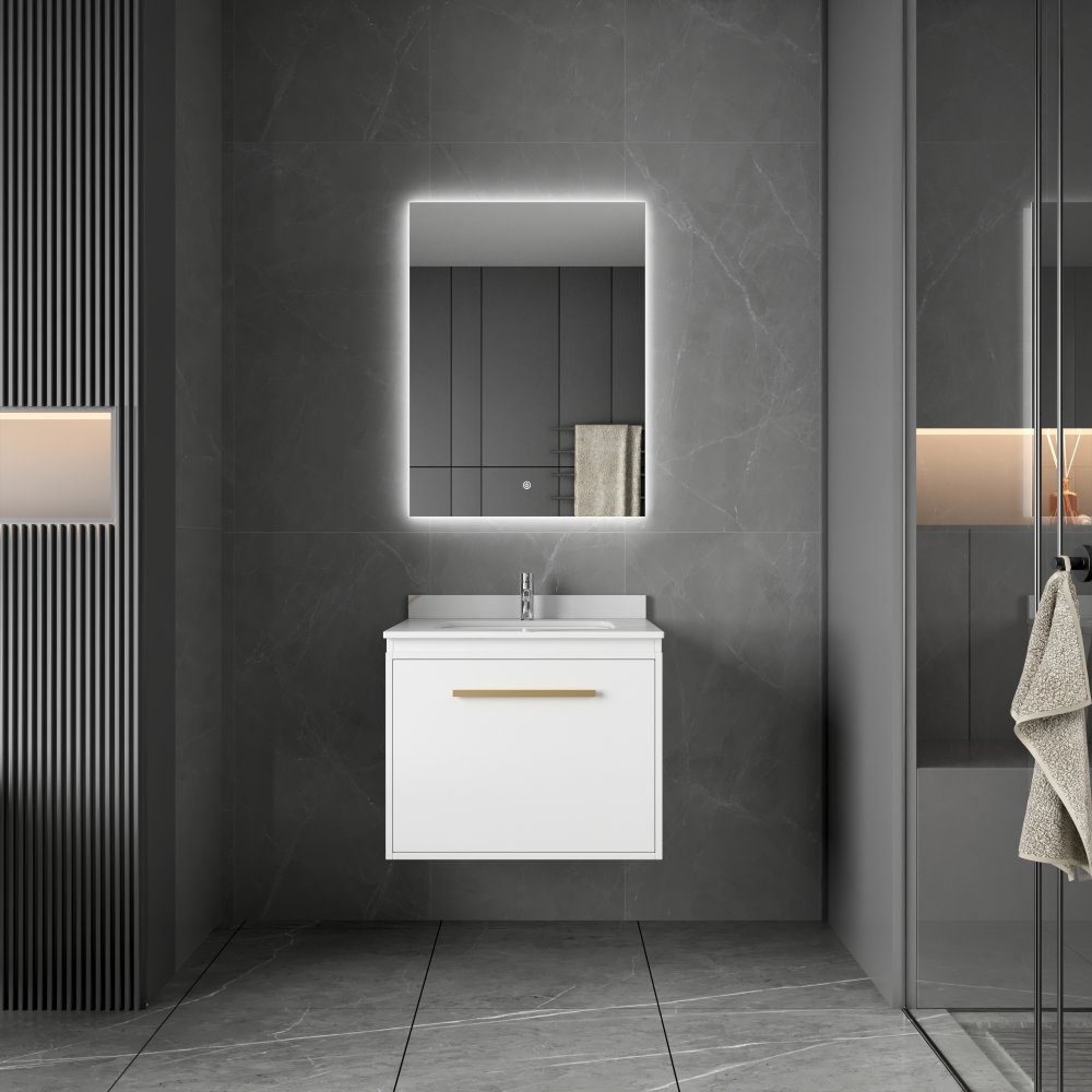 Baderomsmøbel 60 cm hvitt og messing LED-speil - Nova