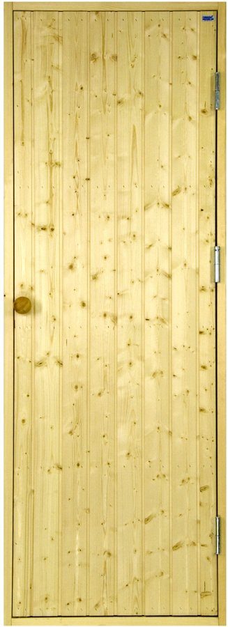 Badstuedør uten glass som leveres med ubehandlet karm som skal oljes eller lakkeres for montering.