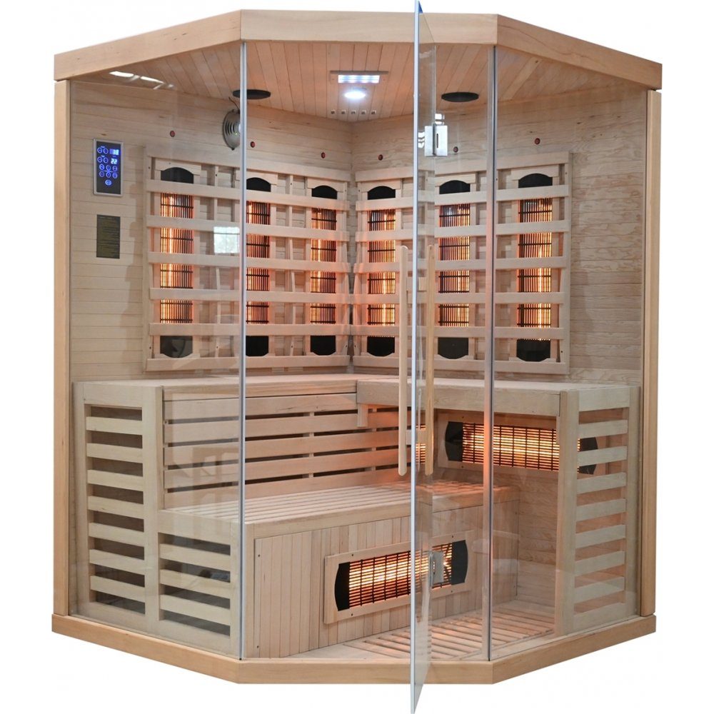 Modern badstue med funksjonaliteter og effektive infrarøde varmere sentrert rundt en keramisk stang. Badstuen har et kontrollpanel hvor du kan styre varme, belysning, radio/MP3 og luftionisering. Kraftig badstue som egner seg bra for opptil til 3~4 personer.