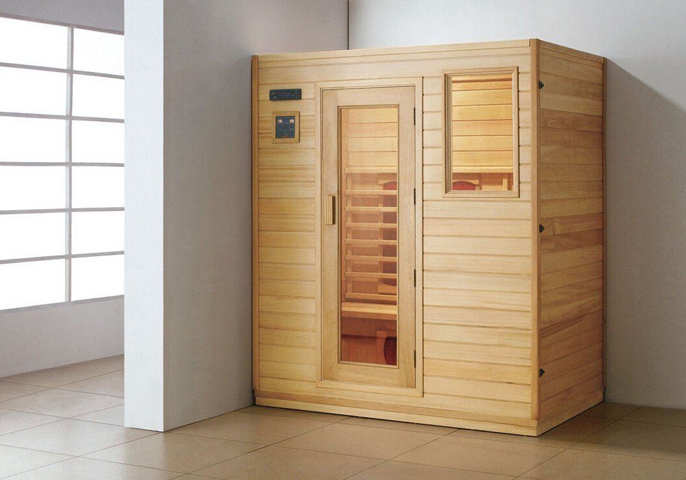 Moderne badstule laget av furu. Badstuepakken leveres komplett med badstueaggregat og kontrollenhet. Kontrollenheten har FM-radio og CD-inngang, samt temperatur- og tidsjusteringer.