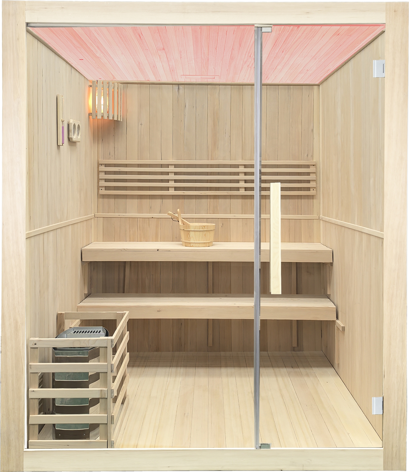 Dette badsturommet for 4 personer er en stilig og romslig løsning for deg som ønsker å skape en avslappende oase i hjemmet, fritidsboligen eller spaområdet. Med mål på 180x180x210 cm tilbyr denne badstuen god plass til felles badstueøkter.