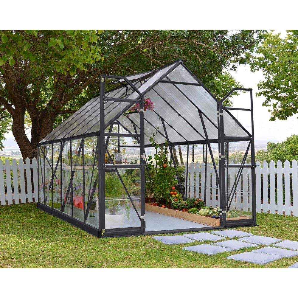 Et drivhus med klare veggpaneler og 2-veggs isolerplast i taket. Begge av støtbestandig polykarbonat. Panelene beskytter mot skadelig UV-stråling, men har fortsatt mer enn 90% lysgjennomstrømming
