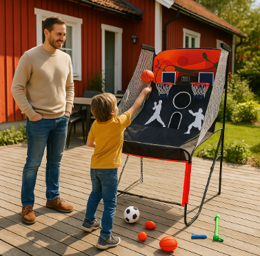 Multisport kan brukes både utendørs og innendørs (hvis underlaget tillater det), noe som gjør det til et fleksibelt og morsomt alternativ hele året. Det kompakte designet tar ikke opp mye plass, men tilbyr masse spillmoro.