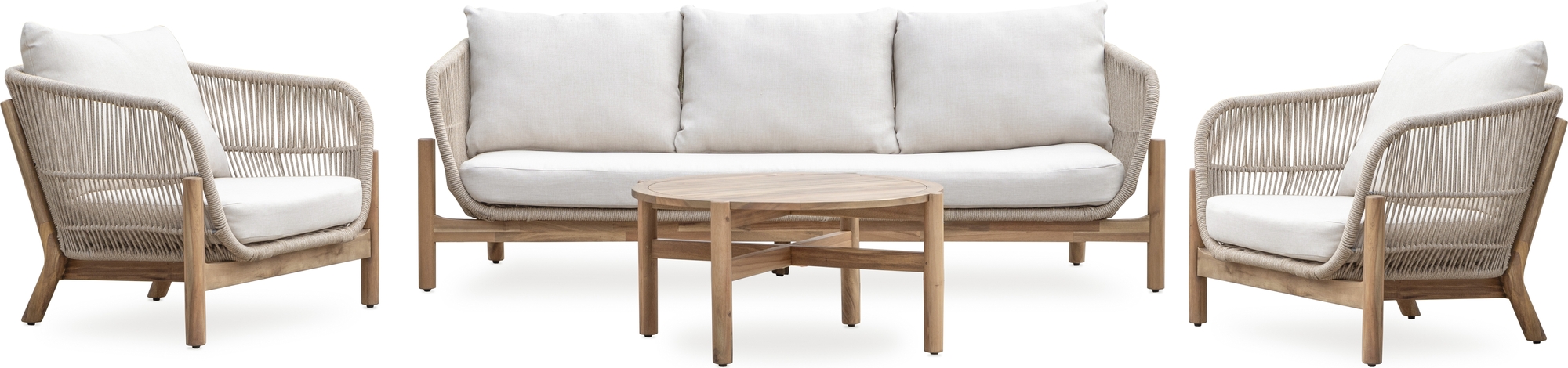 Bellagio er en av våre mest eksklusive og vakre loungegrupper. Gruppen er bygget i eksklusivt solid teakoljet akasietre med matchende beige tau og stilige lette puter i 230 grams stoff.