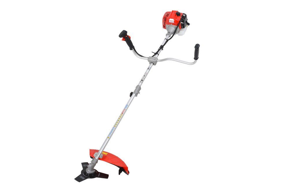 Bensindrevet gresstrimmer/ryddesag med trimmerhode (trimmertråd er inkludert), skuldersele og utstyr for blanding av bensin og olje. Drift, 2-takts 43 cc bensinmotor.