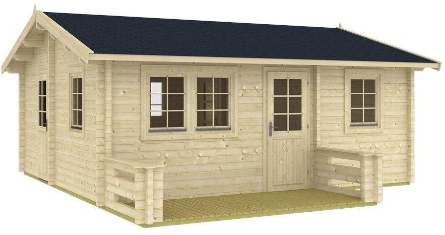 Bert fritidshus er et tømmerhus i klassisk design med saltak og tregulv utenfor ytterdøren. Et romslig fritidshus som kan brukes til mye. Materiale av nordisk gran av høy kvalitet, valgt med omhu. Utstyrt med enkeldør med dekorative sprosser, brystning og syv åpningsbare vinduer. Praktisk utedel med tregulv som gjør at det holder seg tørt og fint utenfor døren. Huset er delt inn i fire rom, som gjør at du kan innrede soverommet, kjøkkenet, stueen, etc. slik du ønsker. Hytta er godt egnet for eksempel campinghytte, jakthytte, kolonihytte, kontor, gjestehus og mer. Leveres som byggesett, ubehandlet, og det er enkelt å montere etter anvisningen som følger med.