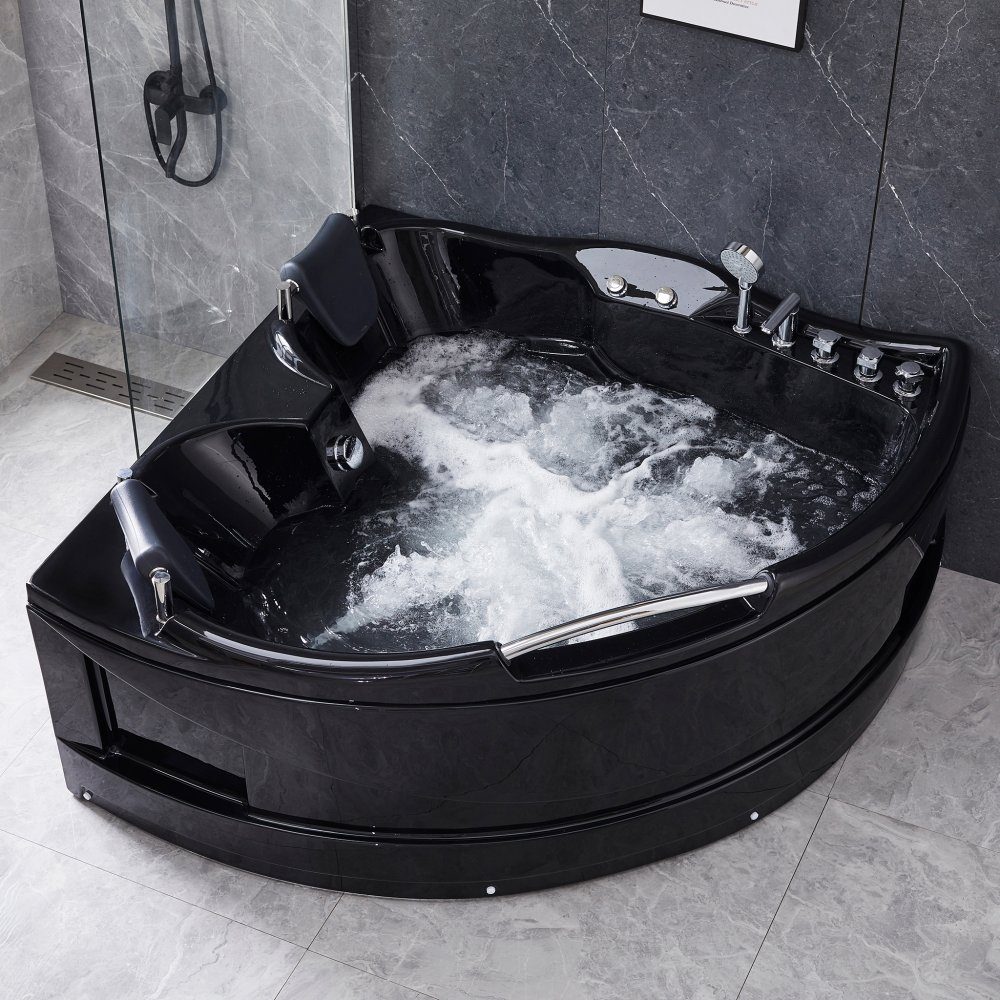 Hjørneboblebadekar for to i svart, moderne design for plassering i et hjørne. For maksimal holdbarhet er badekaret laget av 100 % ren, slitesterk akryl av høy kvalitet . Akryl er et materiale som isolerer godt og dermed holder på varmen fra badevannet i lang tid. Materialet er ikke-porøst, noe som gir en myk og glatt overflate i badekaret som er veldig enkel å rengjøre.