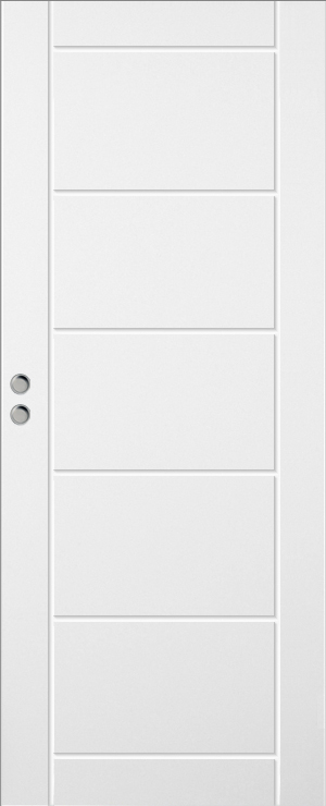 Kompakt malt skyvedør med sporfrest dekor.