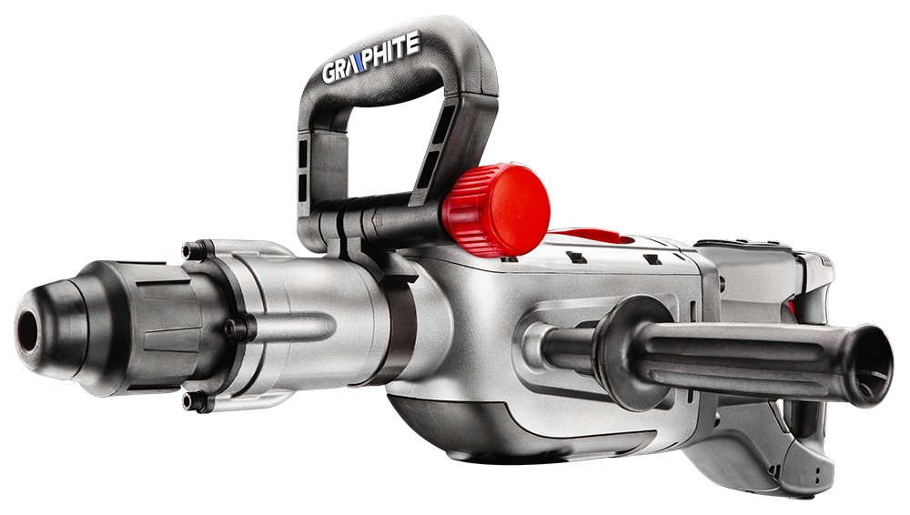 SDS MAX rivehammer med tre forskjellige funksjoner (referensnr. 58G878) med høyeffekts 1700 W motor er uunnværlig for avansert monterings- og rivearbeide. Den har innstillinger for slagboring, avbildning og vinkeljustering av meiselen. Slagstyrke: 27 J, som gjør verktøyet effektivt for materialer som betong, murstein eller stein. Hammeren har et spesielt støtdempingssystem i håndtaket, noe som er spesielt nyttig for langsiktig riving. Håndtaket er også belagt med gummi for bedre arbeidskomfort. Slaghastigheter ved normal fart er 950-1 900 slag per minutt, omdreininger ved normal boring er 160 til 320 runder/min. Hammermekanismen har en overbelastningskobling som beskytter enheten mot utilsiktet overoppheting. Vekselkassen er forsterket med en magnesiumlegering. Settet inkluderer: Betongbor, stemjern, støvdeksel og smøremiddelbeholder. Borrdiameter i betong 50 mm, Strømkabel 3 m, mål (LxH) 730 x 205 mm, Vekt 11 kg. 1 Murbor, 1 meisel, støvdeksel, ekstra- og sidehåndtak, smøremiddelbeholder, veske. CE-sertifisert.
