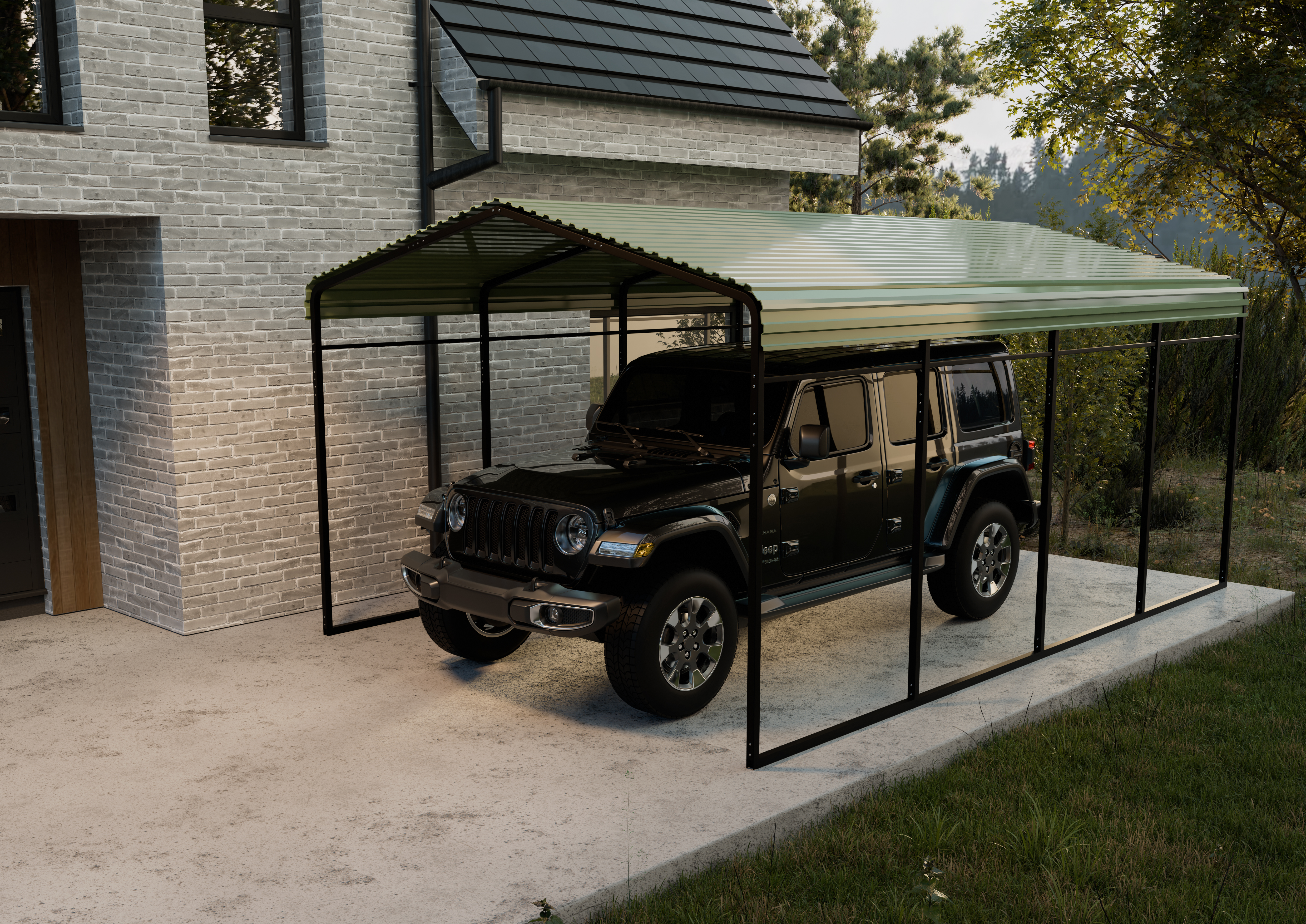 Carport med metallramme og fargeplate