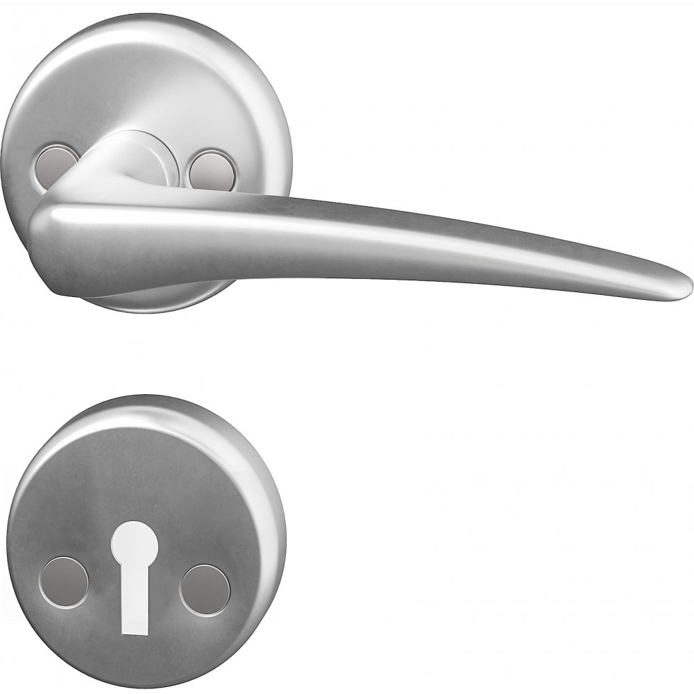 Håndtak og nøkkelplate i moderne design, til innerdører. Platen er laget av aluminium.