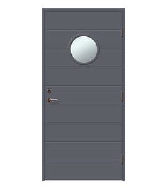 Ytterdør med vindu i Lillian-serien. Døren kan tilpasses dine behov i forhold til størrelse, farge, vindustype, åpningsretninger og mer.