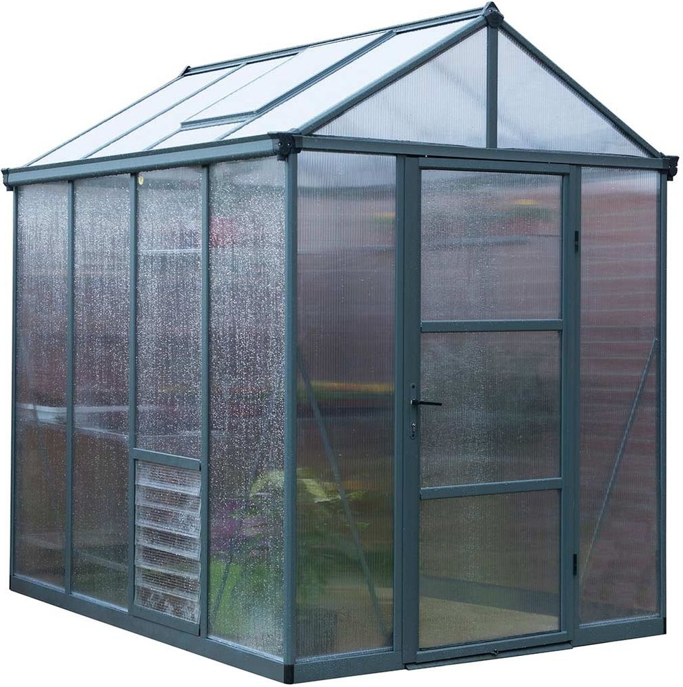Et innovativt drivhus med ventilasjon. Vinduene / panelene er laget av meget slagfast 2-veggs polykarbonat som også har utmerkede isolasjonsegenskaper, samtidig som det skjermer mot skadelig UV-stråling.