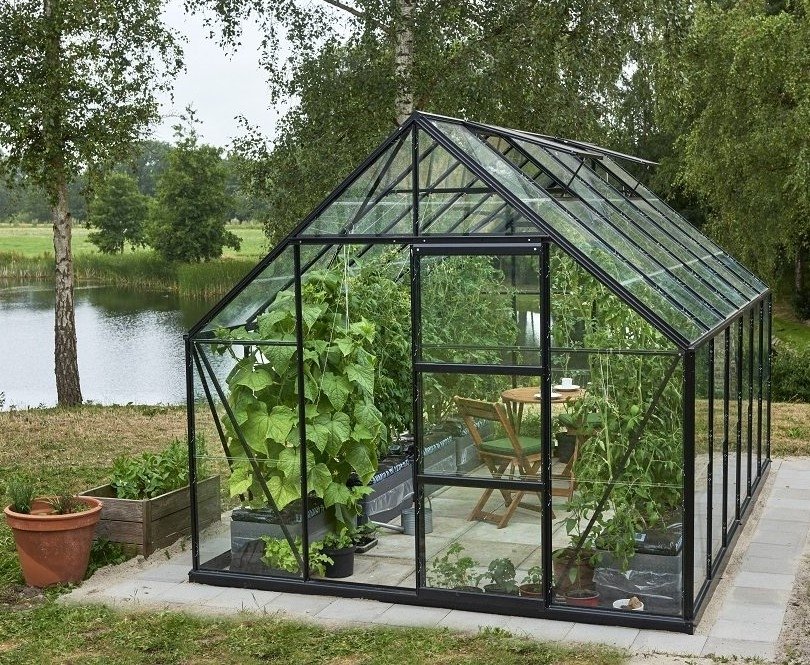 Drivhus Universal - Sort med herdet glass 9,9 m²