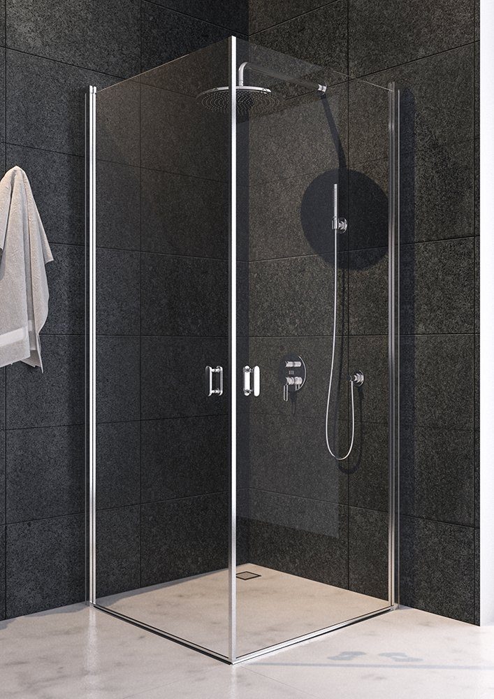 Dusjhjørnet er tilgjengelig i flere størrelser på bredden og er tilgjengelig i en større og mindre variant avhengig av ledig plass. Høyden er 1900 mm. Bredden på dørene kan justeres ca 2 cm.