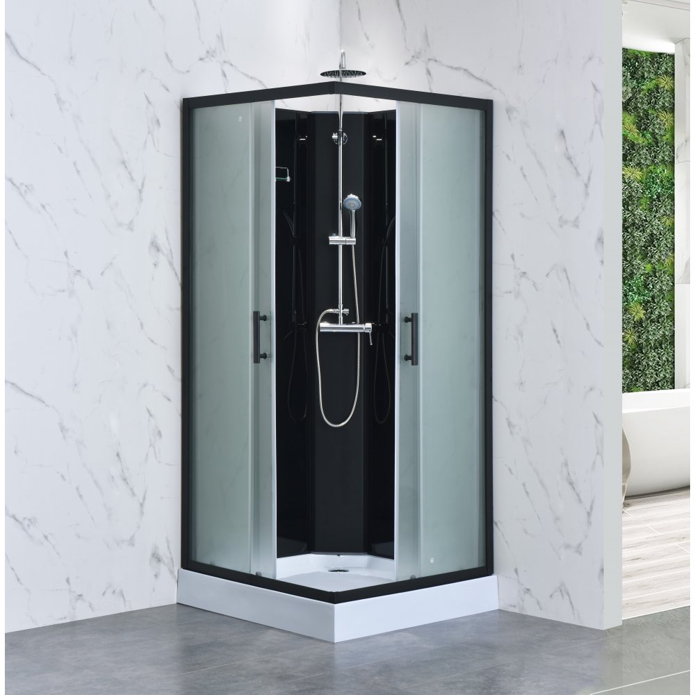 Dusjkabinett 80×80x215 cm | Hvitt glass og massasjedyser | Nova