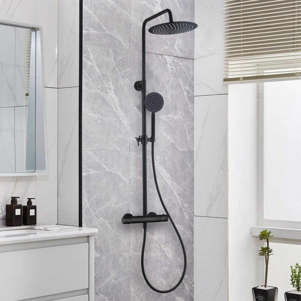 Dusjen selges med termostatblander med sikkerhetsstopp ved 38 grader. Fordelen med en termostatblander er at den holder nøyaktig samme temperatur mens du dusjer, fordi ventilen blander varmt og kaldt vann til ønsket temperatur og reagerer direkte på eventuelle endringer i trykk eller temperatur. Hvis det skulle oppstå et vannbrudd mens du dusjer, vil ventilen stenge seg automatisk. Blandebatteriet er koblet til vannuttaket fra veggen (dusjtilkobling G 1/2) .