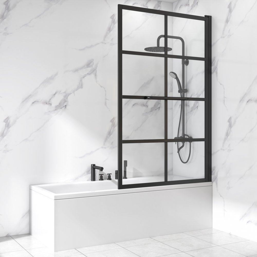 Dusjvegg for badekar 150x80 cm med svarte profiler og 6 mm herdet sikkerhetsglass