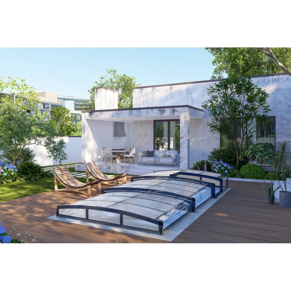Dette bassengtrekket fra Eco Smart er en praktisk og stilig løsning for å beskytte bassenget ditt og forlenge svømmesesongen. Med sine dimensjoner på 3x6 m og avansert UV-beskyttelse som blokkerer opptil 98 % av skadelige UV-stråler, bidrar den til å holde vannet varmt og rent. Taket reduserer også fordampning og beskytter effektivt mot skitt, løv og dårlig vær.