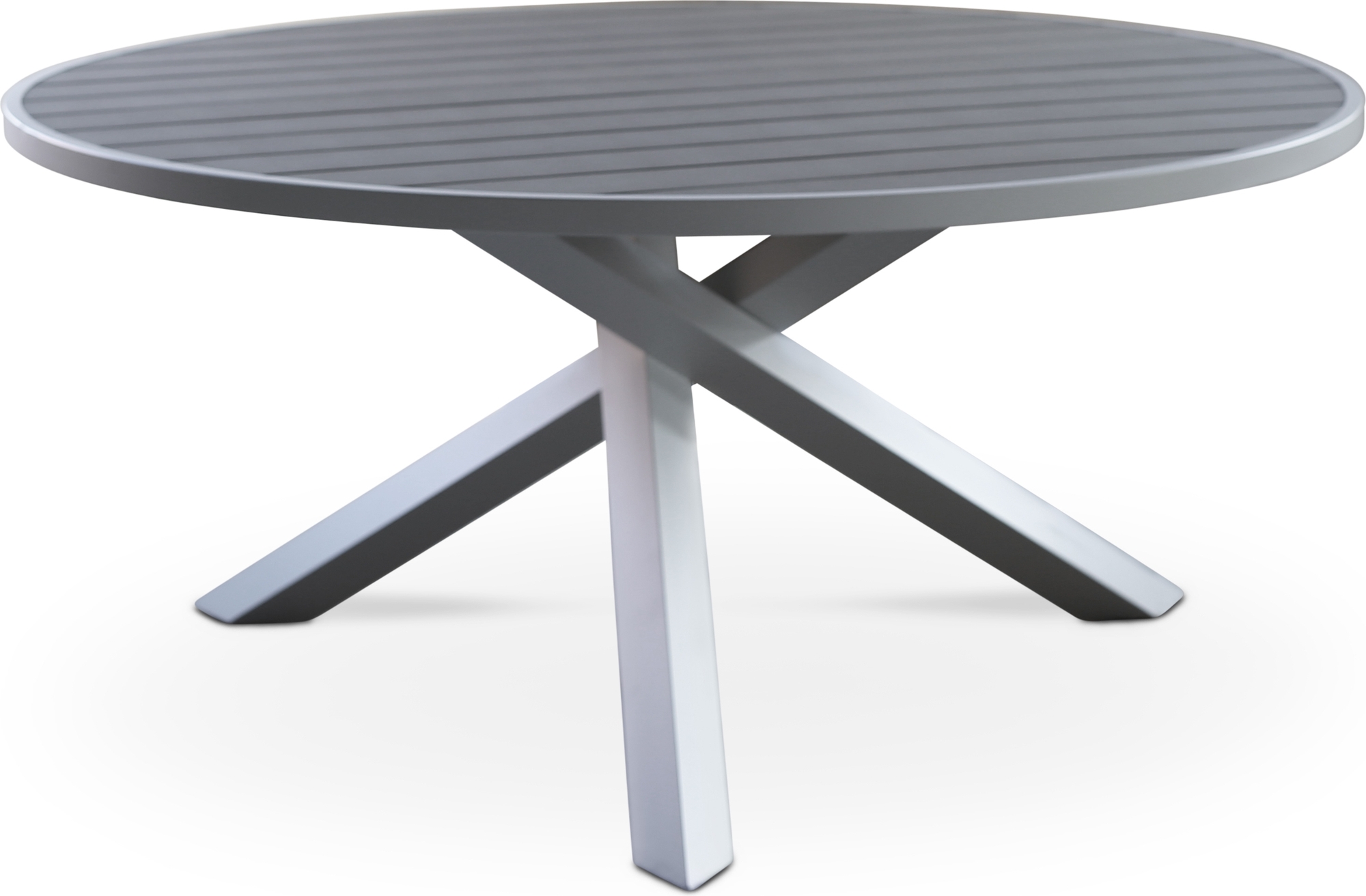 Ekenäs spisebord i hvitlakkert aluminiumsramme med topplate av grå kryssfiner.