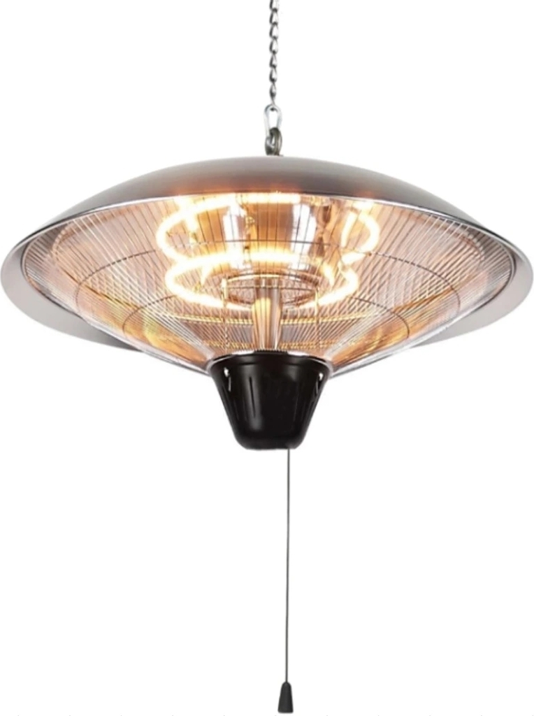 Hengende infrarød varmeovn egnet for interiør og innendørs eksteriør. Den kan derfor brukes for eksempel under taket på overbygde uteserveringer, lysthus og overalt hvor den er plassert under taket slik at den ikke utsettes for regn eller snø.