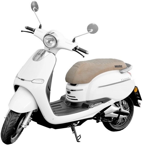 Elektrisk moped med stilig klassisk scooterdesign, stort og komfortabelt sete og rikelig med fotplass. Leveres med en moderne digital turteller som tydelig viser all nødvendig informasjon som hastighet, kjørelengde, kontrollamper og batteristatus. Mopeden har en maksimalhastighet på 45 km/t men kan justeres og settes ned til 25 km/t. Låsen på mopeden er forsterket med metall for å hindre at noen skader den. Det er også mulig å låse opp en lagringsplass under setet. På siden av setet er det utbrettbare fotstøtter for passasjerer.