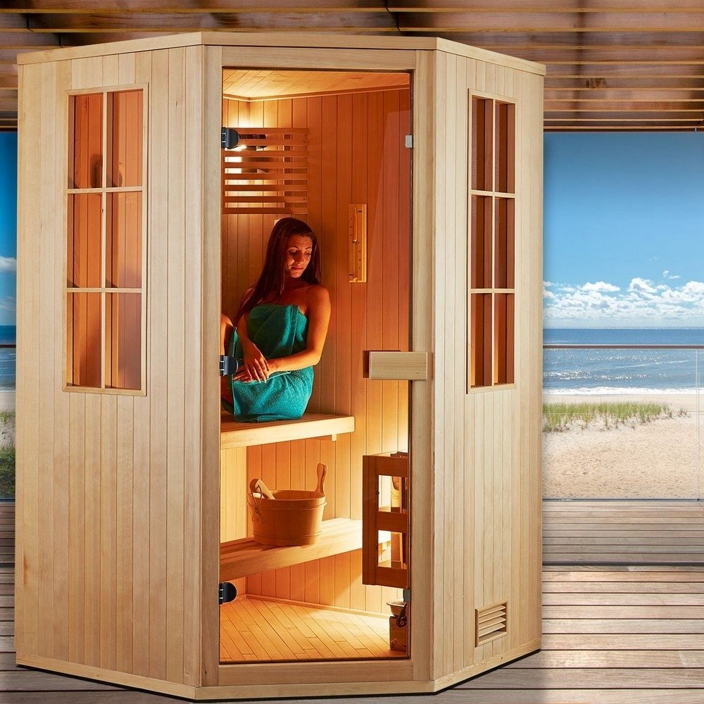 Badstuepakken er komplett med badstuvarmer og lampe.