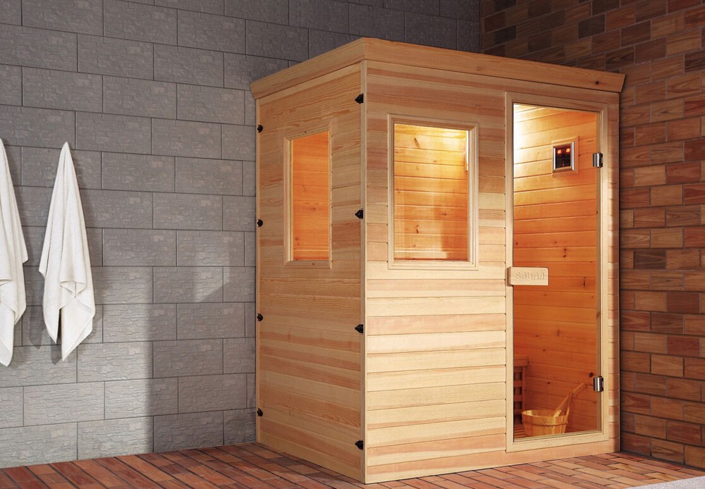 Moderne badstule laget av furu. Badstuepakken leveres komplett med badstueaggregat og kontrollenhet. Kontrollenheten har FM-radio og CD-inngang, samt temperatur- og tidsjusteringer.