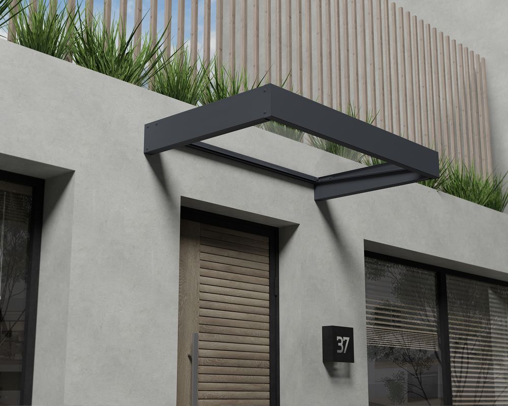Praktisk beskyttelse for dřrer og vindu. Entrétaket er laget av rustbestandig pulverlakkert aluminium og fester laget av galvanisert stĺl. 4 mm tykt takpanel av polykarbonat som er praktisk talt uknuselig. Integrert takrenne. Enkel DIY montering.