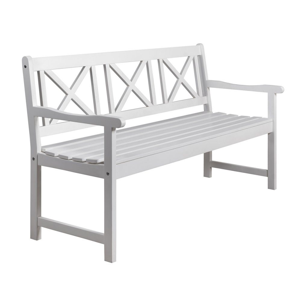 Hvit hagebenk i furu - Utendørs sittebenk for hage og terrasse