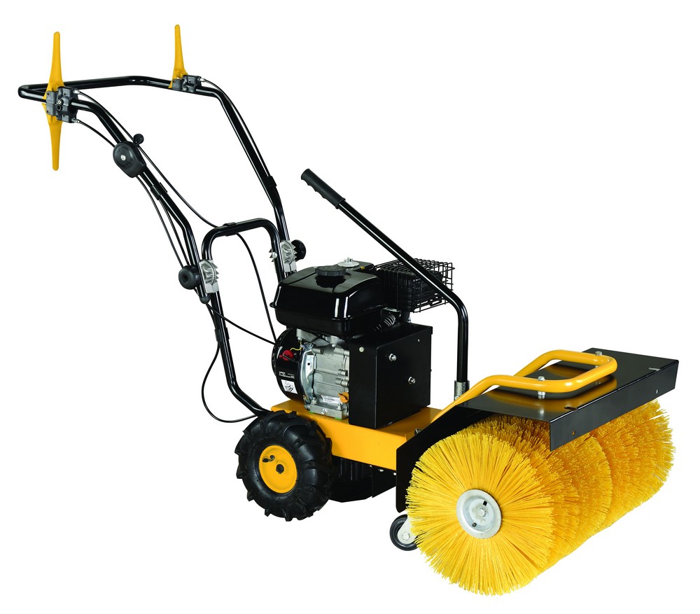 Bensindrevet selvgående feiemaskin i stålchassis. 4-takts motor med maksimal motoreffekt på 6,5 hk.
