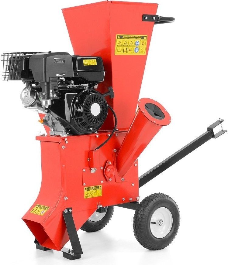Flisemaskin med 4-taktsmotor på 9,7 kW, utstyrt med trekkstag. De høyt presterende knivene kan kappe opptil 89 mm tykke grener.