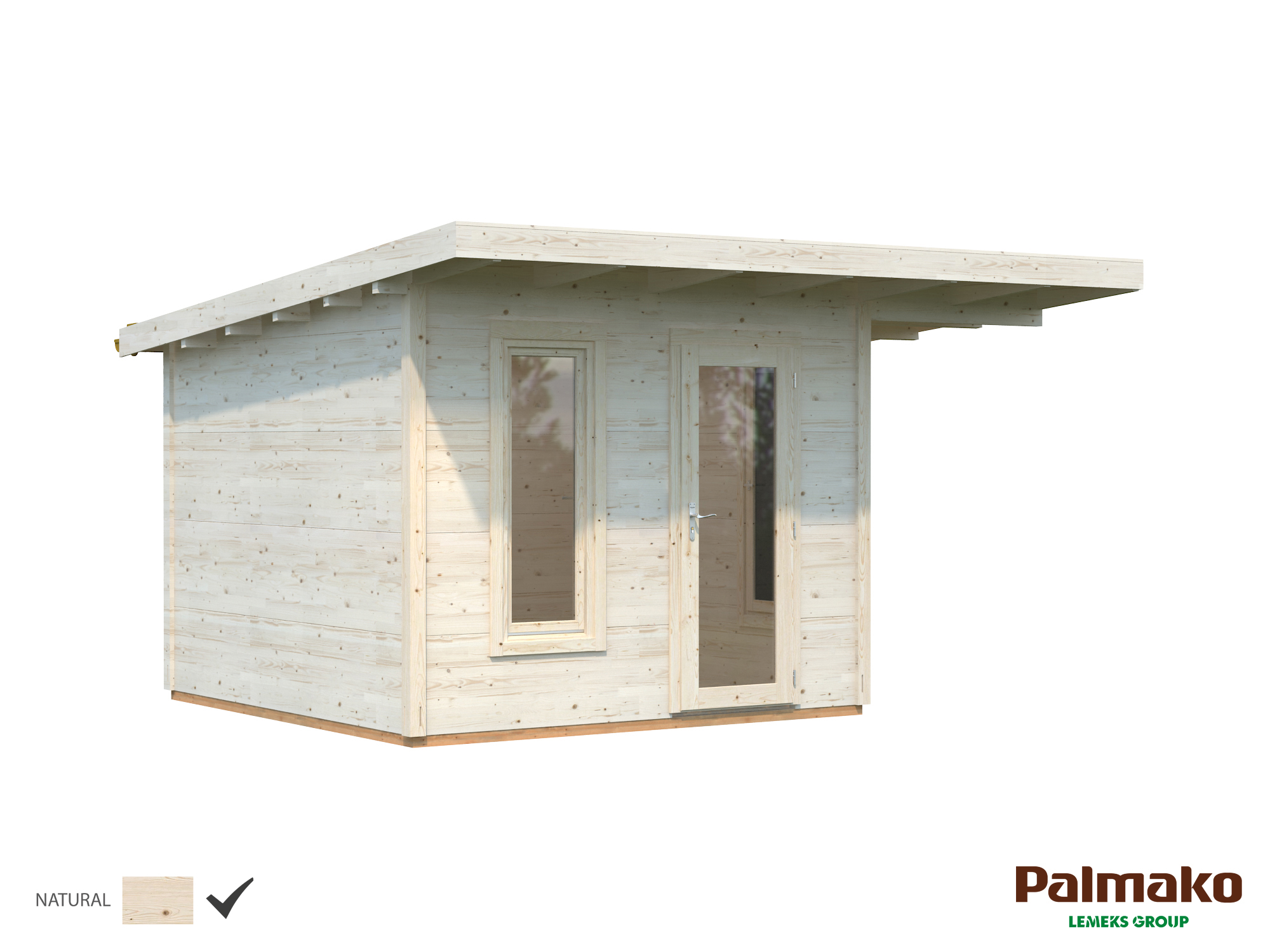 Tak og gulv består av 18 mm rupanel, dette er inkludert i settet. Også behandlede bærebjelker til fundamentet er inkludert. Selve fundamentet må du lage selv, materiale til dette er ikke inkludert. Hvordan fundamentet lages avhenger av jordforholdene, husets utseende og hva du foretrekker. Enten kan en plate støpes eller en sokkelbunn på for eksempel hageplater eller leca-blokker.