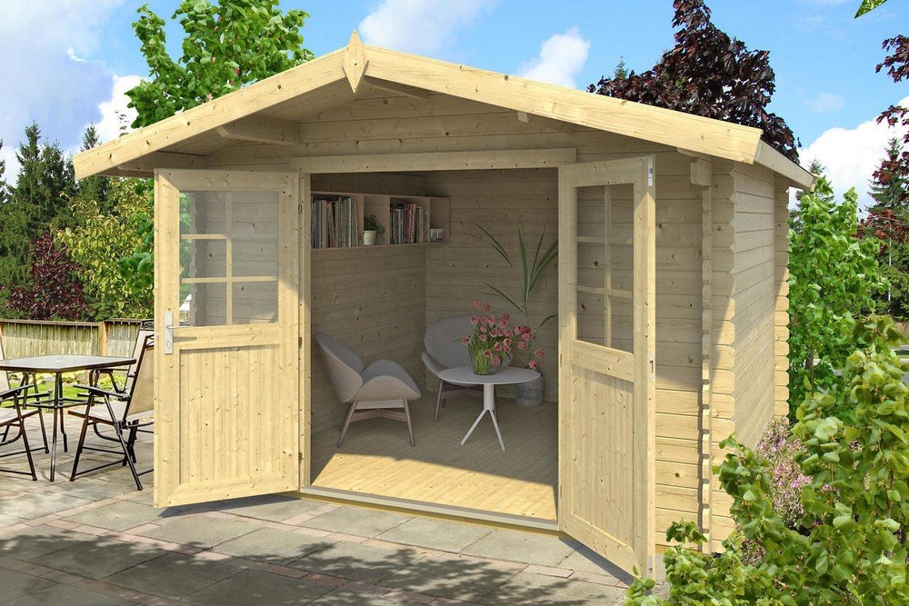 Denne friggeboden leveres komplett som sett og monteres enkelt sammen til den medfølgende tegningen. Hytten har en knyttet tømmerdesign og -struktur som gjør det både lett og montere å stabilt. Alt materiale leveres ubehandlet, det anbefales å behandle med baseolje, utemaling eller dekkmaling tidlig. Inkludert er alt som trengs for montering, d.v.s. spiker, skruer osv.