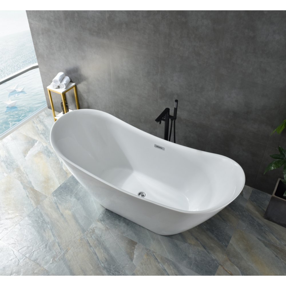 Den medfølgende bunnventilen i messing og den stilige overløpsbeskyttelsen i rustfritt stål gir en eksklusiv følelse og sikrer lang holdbarhet. Badekaret er frittstående og kan plasseres fritt i rommet - perfekt for de som ønsker å skape en moderne og spa-aktig atmosfære i hjemmet sitt.