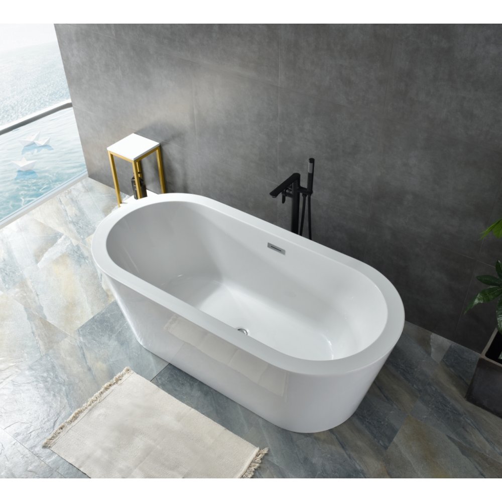 Badekaret er utstyrt med messingavløp og overløp i rustfritt stål, og kombinerer både funksjon og stil. Det frittstående designet gjør den enkel å plassere fritt i rommet og passer perfekt i både moderne og mer klassiske baderomsmiljøer.