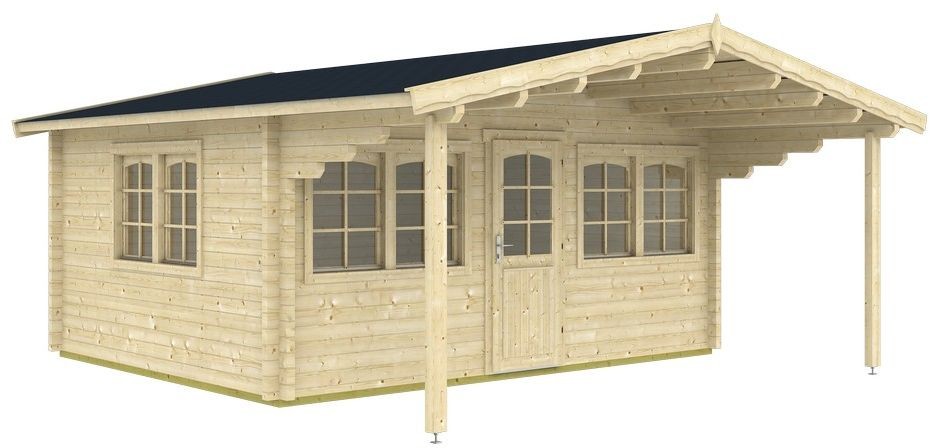 Gagnef A anneks er en tømmerhytte i elegant design med saltak og robust takgavl. Et romslig anneks som kan brukes mye. Materiale av nordisk gran av høy kvalitet, valgt med omhu. Utstyrt med enkel dør med dekorative sprosser, brystning og seks åpningsvinduer. Annekset passer passer bra som campinghytte, jakthytte, hytte, kontor, gjestehus og mer. Leveres som byggesett, ubehandlet, og det er enkelt å montere etter anvisningen som følger med.