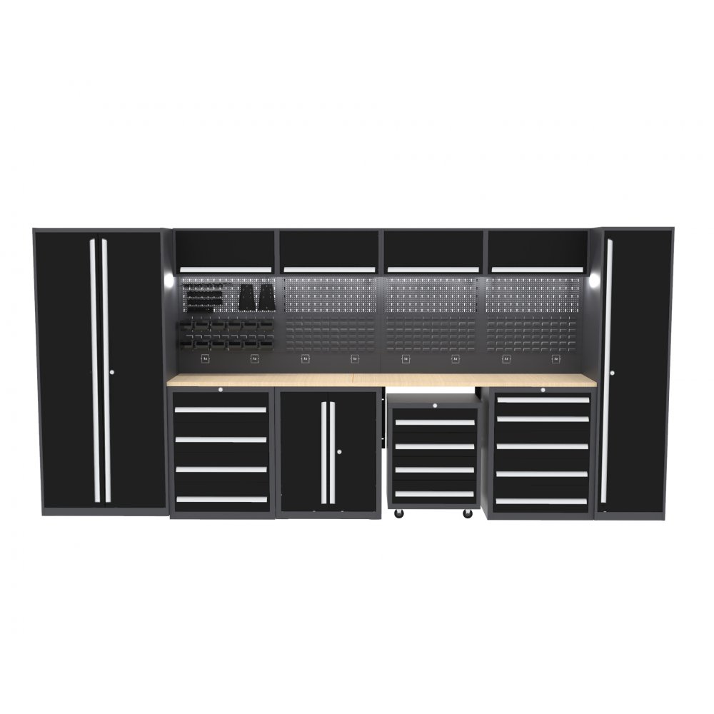 Oppdag den perfekte oppbevaringsløsningen for arbeidsplassen din! Dette robuste oppbevaringssettet i stål kombinerer smart design med slitesterk funksjonalitet og er laget for å møte behovene til et profesjonelt verksted eller en velorganisert garasje. Det modulære designet tilbyr et bredt spekter av løsninger, fra romslige skuffeskap og fleksible arkivskap til veggmonterte skap og mobile verktøyvogner. Hver del er laget av høykvalitetsstål som gir holdbarhet, sikkerhet og enkel tilgang for effektiv organisering.