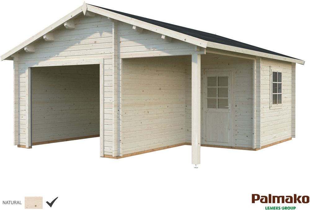 Dette byggesettet leveres uten porter. Denne garasjen er også tilgjengelig med svingport eller takport.