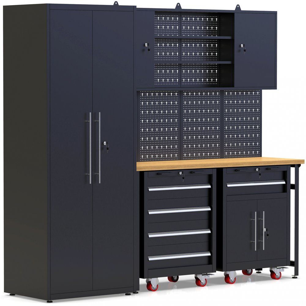 Med dette komplette oppbevaringssystemet får du en velorganisert arbeidsplass der alt verktøy og tilbehør har sin plass. Perfekt for garasjen, hobbyrommet eller verkstedet.