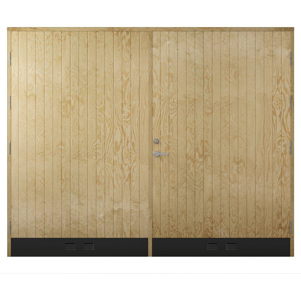 - Sparkeplate: brun, foldet rundt dørpanelets nedre kant og brettet opp 20 mm på innsiden. Ventilert.