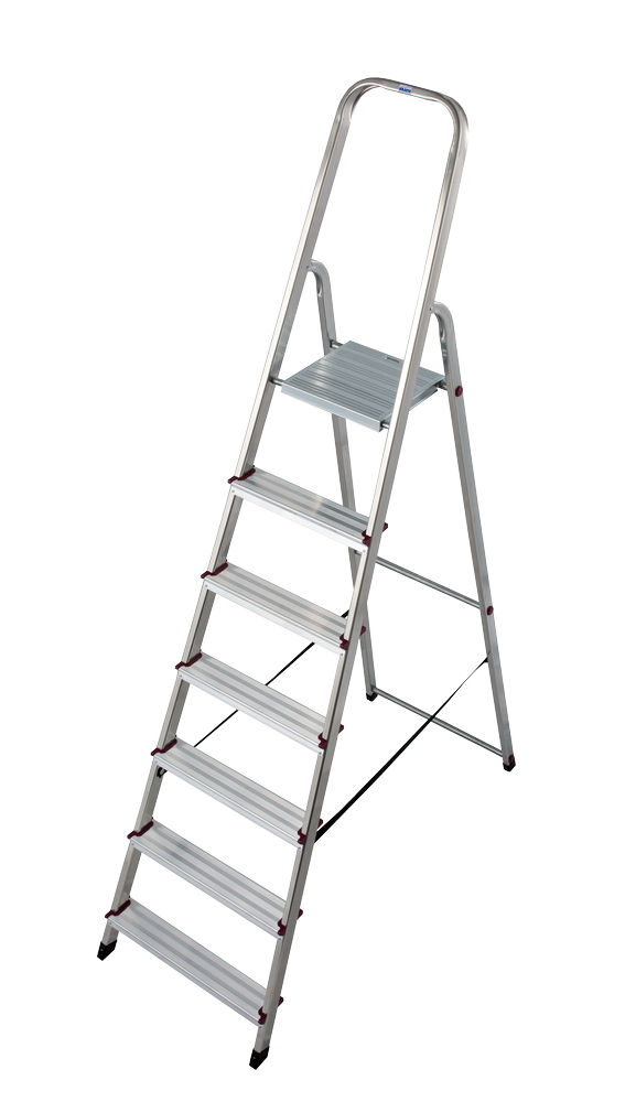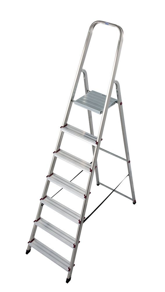 Denne kompakte aluminiumsstigen har mange nyttige bruksområder. Lett å lagre og ta frakte med en vekt på kun 5,7 kg. Gardintrappen har 7 trinn og en lengde på 1,40 meter som kan gi deg en høyde på ca. 3,40 meter. Stigen har en vektkapasitet på 150 kg. Stigen har også glibeskyttelse for et stabilt og risikofritt arbeide.