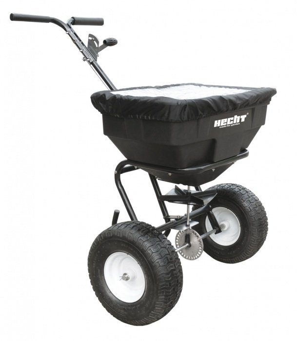 Manuell gjødselspreder med håndtak for spredningskontroll og beholder for 60 liter 56 kg. Fungerer også som såmaskin samt (vintertid) veggsaltspreder.