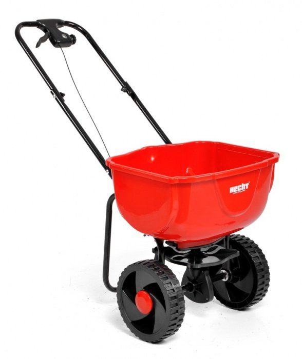 Manuell gjødselspreder med håndtak for spredningskontroll og beholder for 27 liter. Fungerer også som såmaskin samt (vintertid) veggsaltspreder.