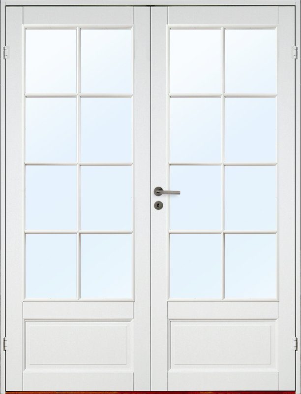 Massiv dobbel innerdør i klassisk speilinndeling for stor lysgjennomstrømming.